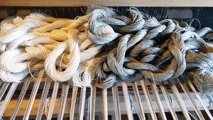 I'm in the middle of warping up my Schacht Standard floor loom with hemp yarn for face cloths. I just finished a run of linen face cloths and this...
